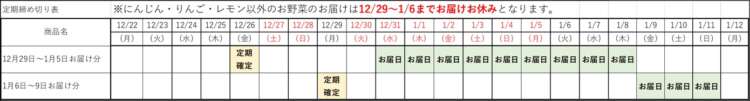 【定期購入】 年末年始のお届けと変更・キャンセル締切のご連絡