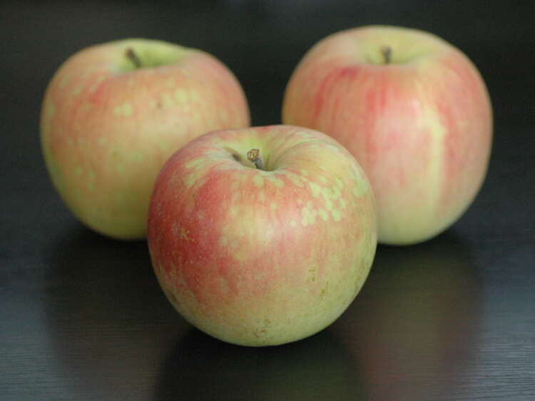 緑色の皮に濃い紅色で縞状に色づく、きれいなりんごです。早生種らしく酸味がやや強めの品種ですが、糖度も高いのでとてもおいしいです。少しの渋みがアクセントになり、夏りんごらしいさわやかな味です。