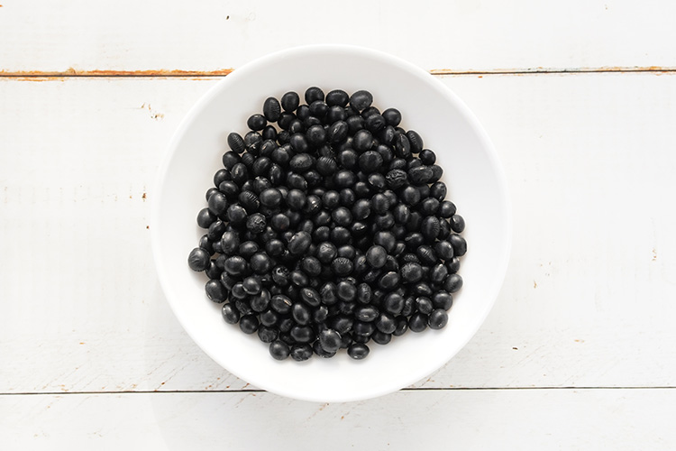 - ボウルに水1Lを入れ、鉄玉、重曹、塩を混ぜ、黒豆をそっと入れ、半日以上置きます。