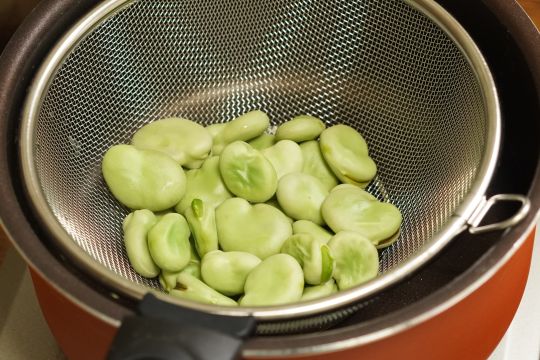- ボコボコした沸騰ではなく中火にし、そらまめを茹でます。小さいものは1分半、大きいものは2分程度が目安です。