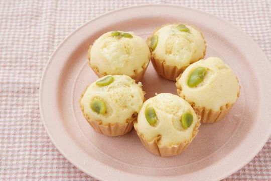 植物性たんぱく質(そらまめ、豆乳)×動物性たんぱく質(卵、チーズ)をバランスよく合わせた蒸しパンは、子どものおやつや、軽食におすすめです。